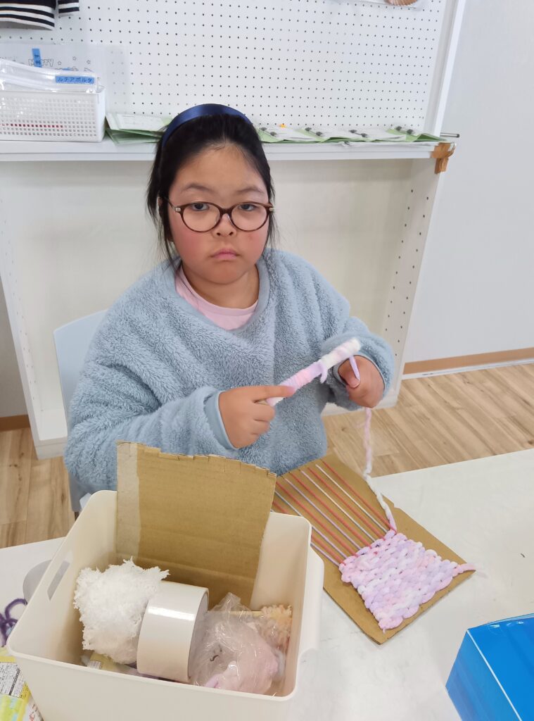 ふわふわの毛糸で何かを作ることを思い浮かべて、ルチアポルタに来るのがより楽しみになったり、ふわふわの毛糸に手で触れていると、学校でがんばってきた体と心がちょっぴりゆるんだり、子どもたちにとってのそんな心地よい冬の過ごし方になればいいなと思っています。