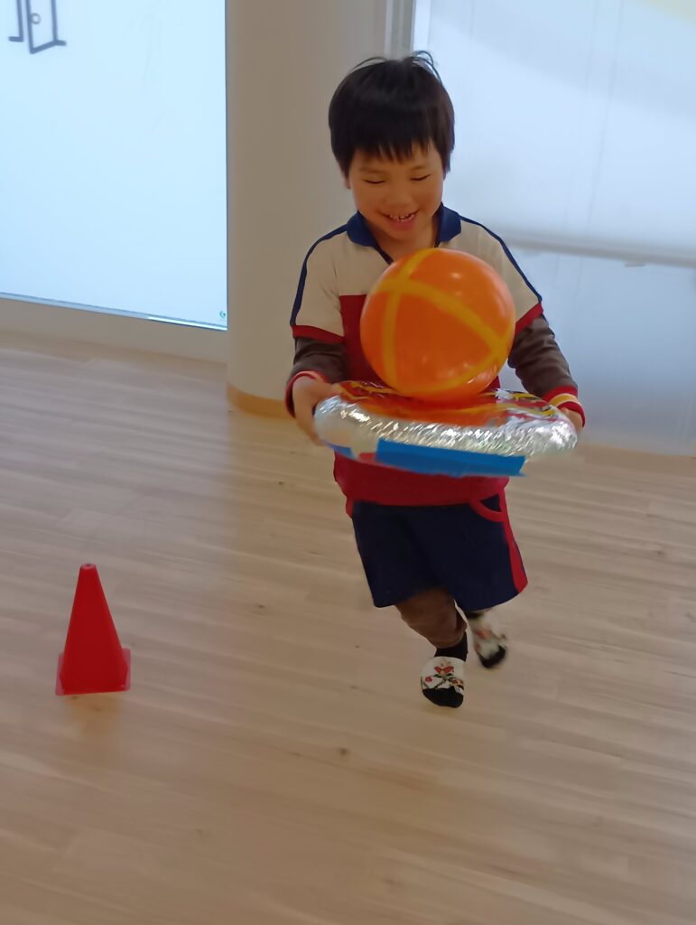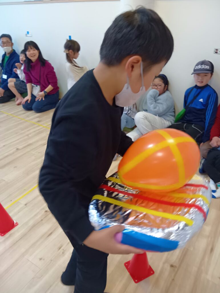 「がんばれー!」「いいよいいよー!」「ゆっくりねー!」とみんなで応援しながら、そーっとそーっと風船を運びます。