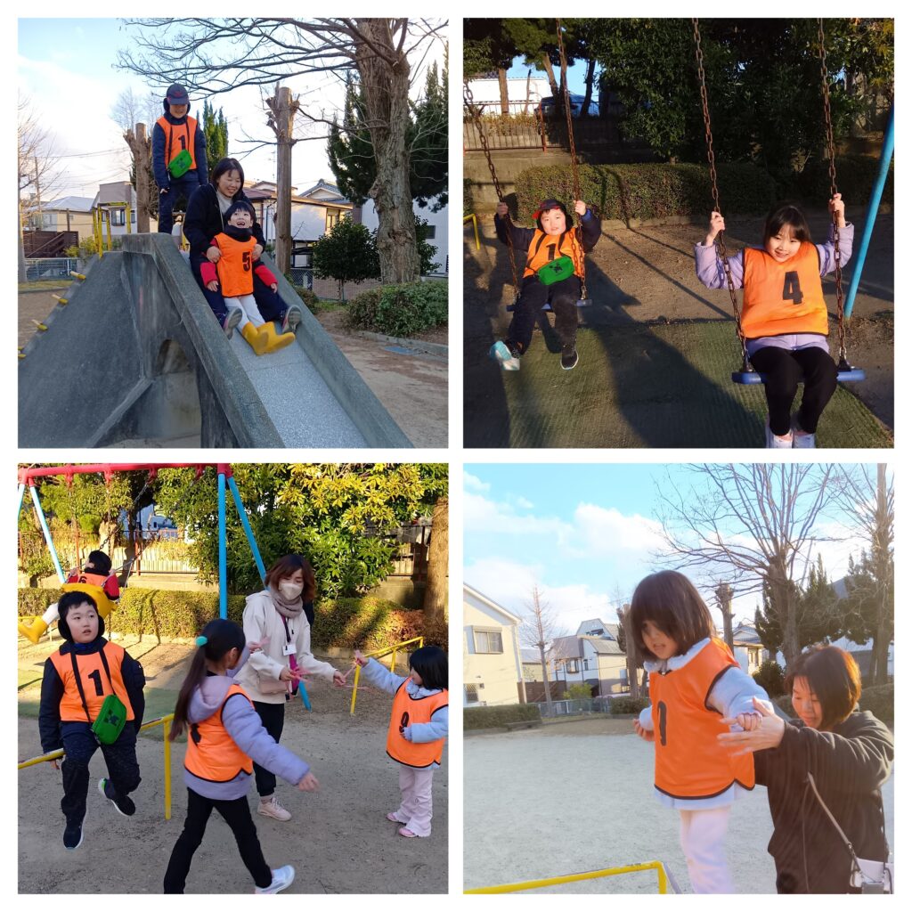 水曜日は、ルチアポルタの近くの公園に行って「しっぽ取り」をしました。