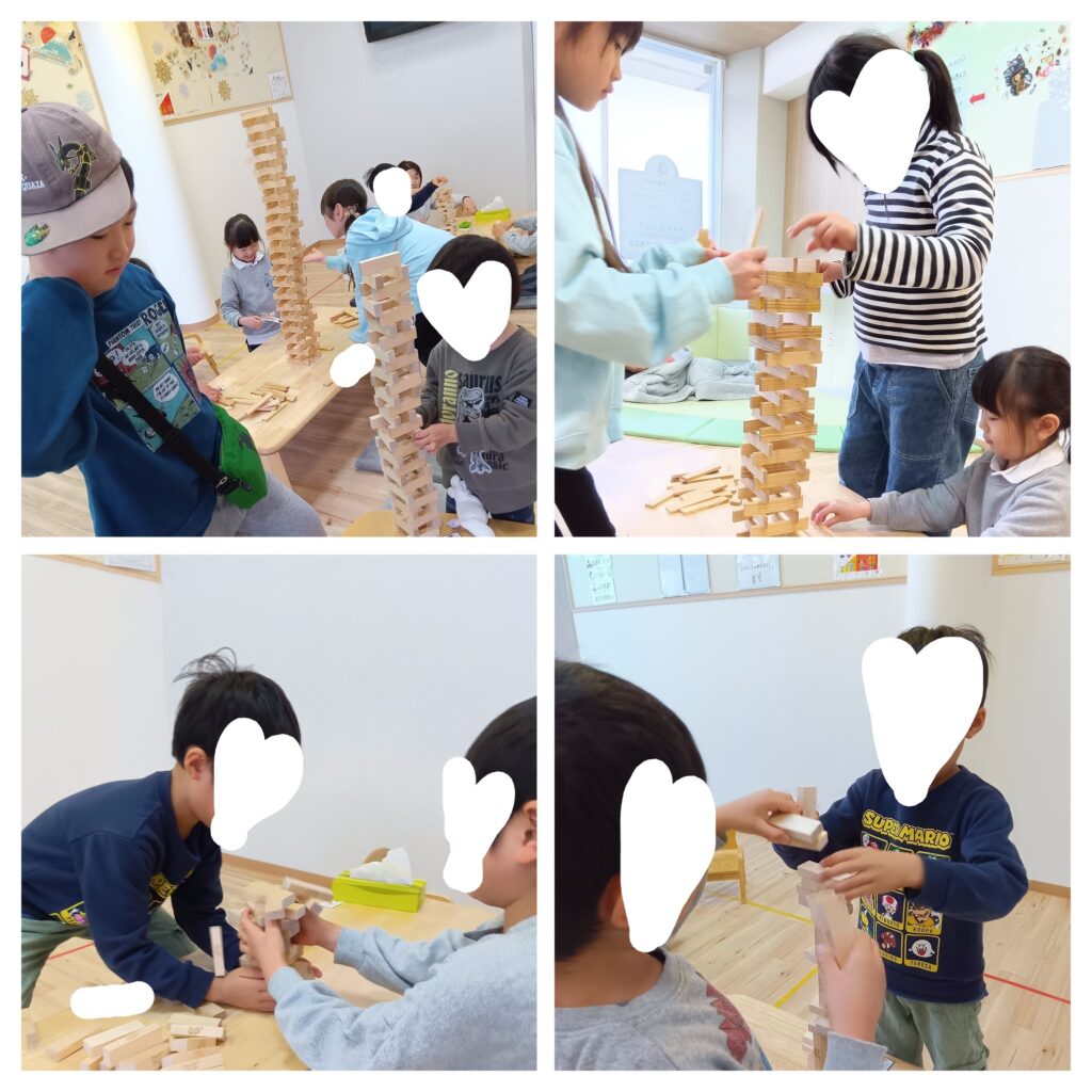 金曜日は、ジェンガやカプラを使って、チームになって高く積み上げました。