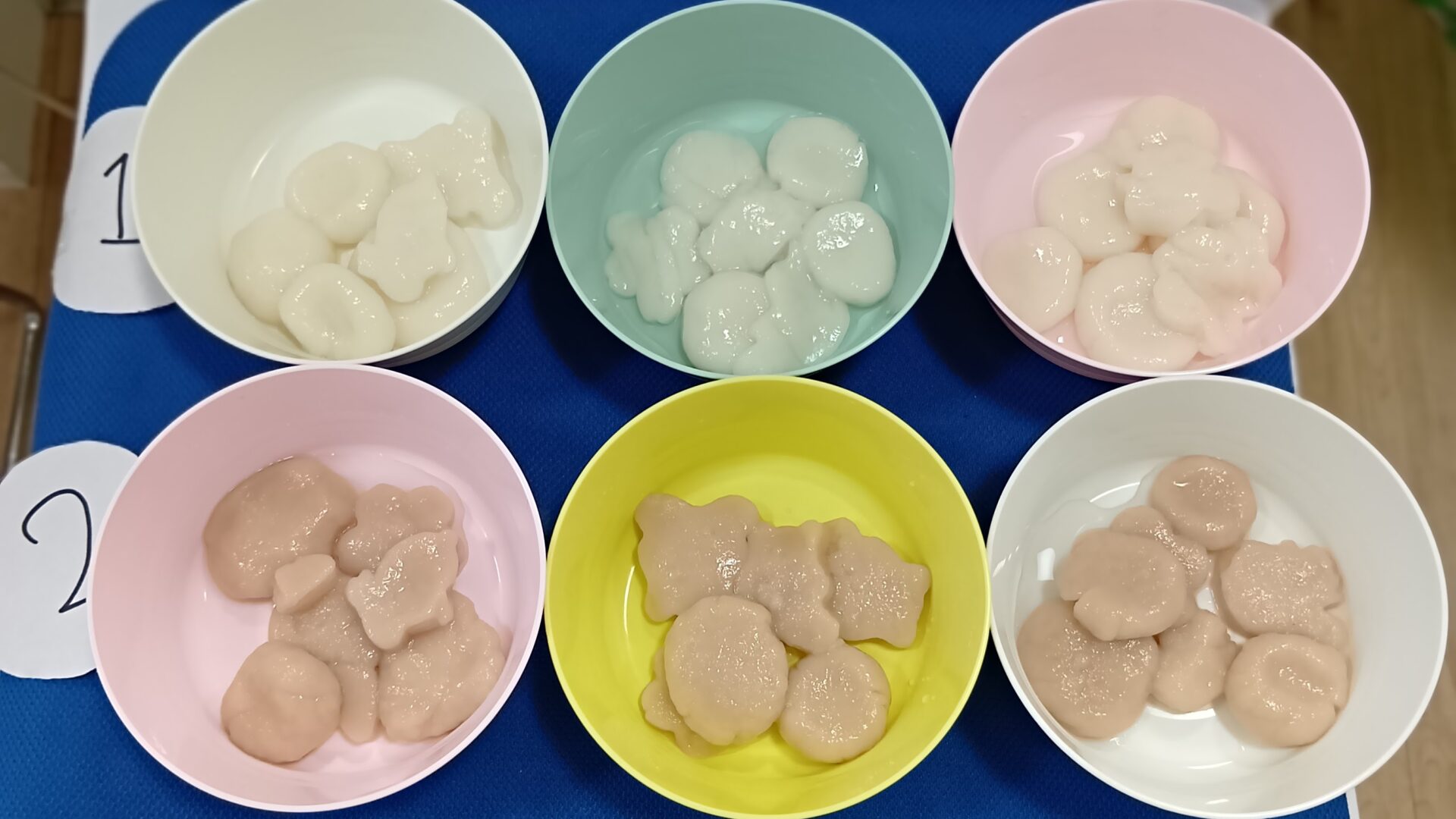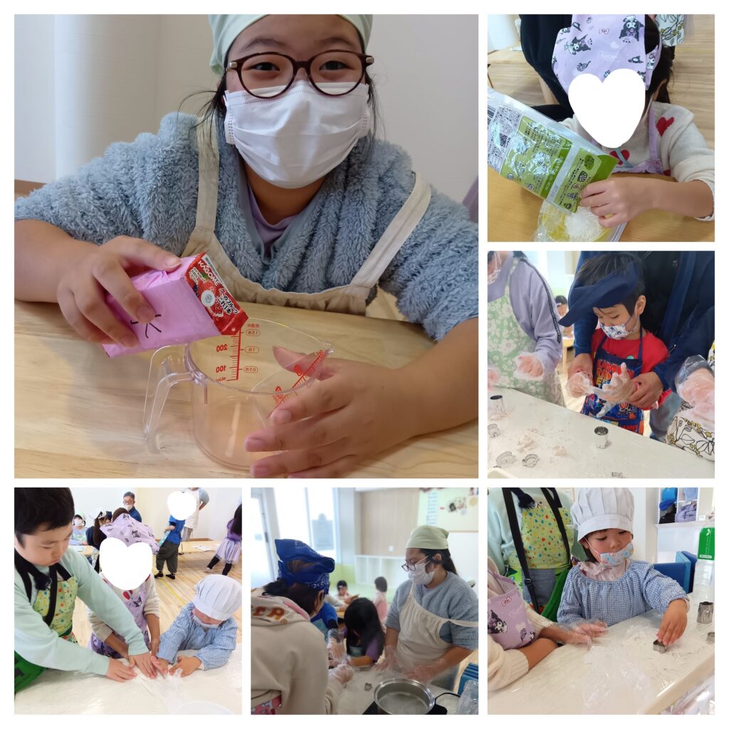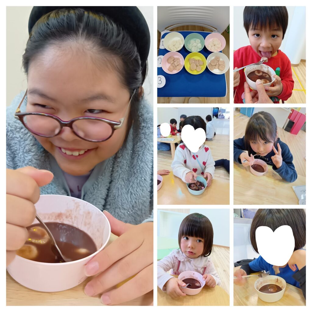 土曜日は、1月らしく「おしるこ」クッキングをしました♪ジュースで白玉にかわいく色をつけたおしるこ。子どもも大人も「おいしい〜♪」と、味もばっちりでした。