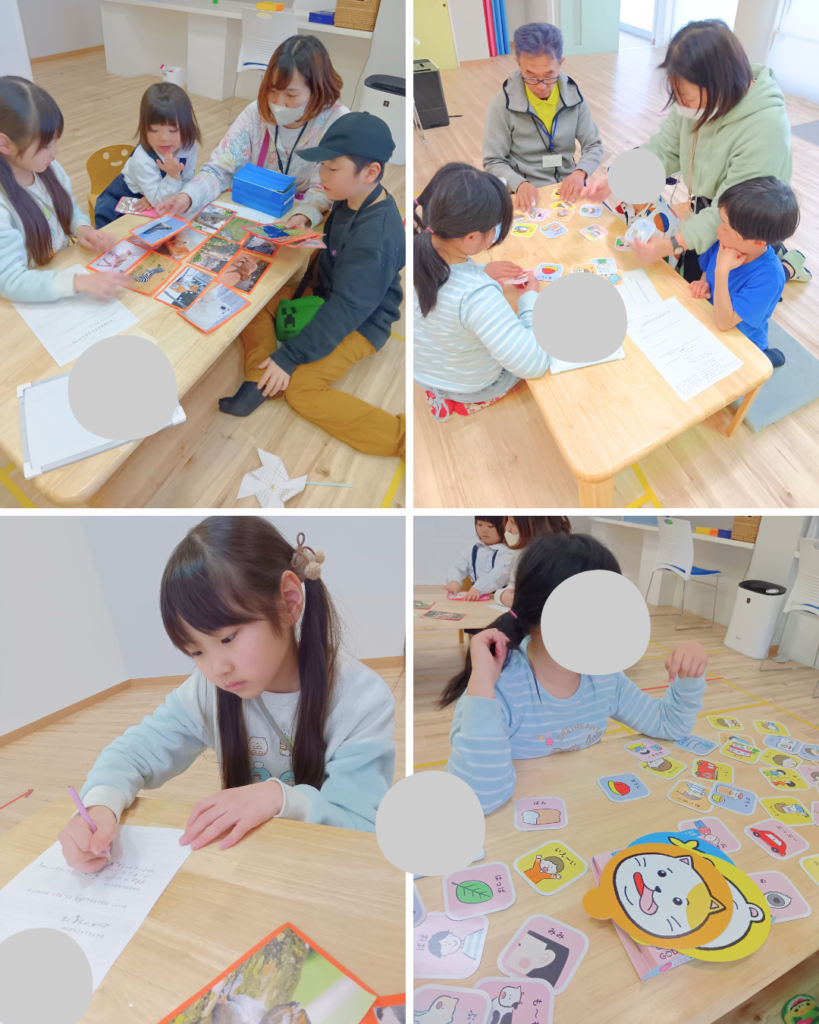 金曜日は、みんなで物語づくりをしました。カードを広げて、それぞれが気になるものを選び、つなぎ合わせながらひとつのお話に。どんなふうにつながるのかな?と考えながら、みんなで想像をふくらませていきます。できあがったのは、思わず笑ってしまうようなへんてこな物語や、なんだかありそうな物語など、いろいろ。一人では思いつかないような展開も生まれて、みんなで作る楽しさを感じる時間になりました。