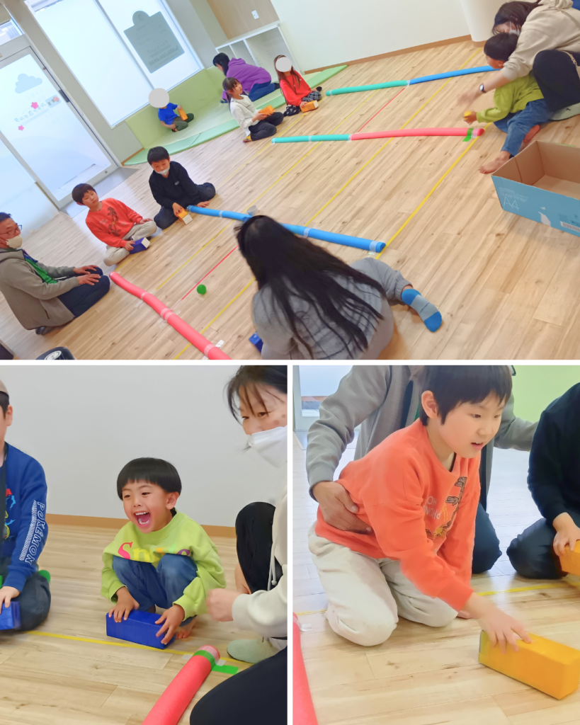 木曜日は、みんなでホッケーを楽しみました♪牛乳パックで作ったホッケースティックを使って、ボールを打ち合います。手作りならではのやさしい雰囲気で、子どもたちも気軽にチャレンジできる遊びです。この日は対戦ではなく、「どれだけ長くラリーが続くか」にチャレンジ。勝ち負けではなく、続けることを楽しむ時間にしました。