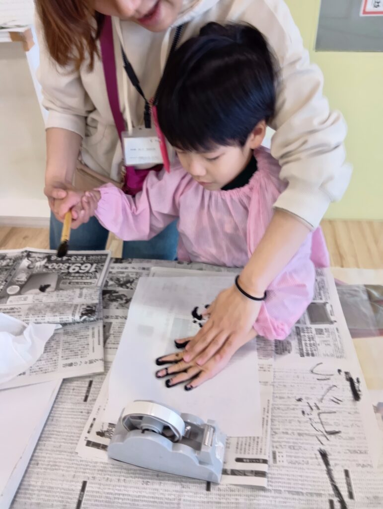手に墨汁をつけてペッタンする子も。